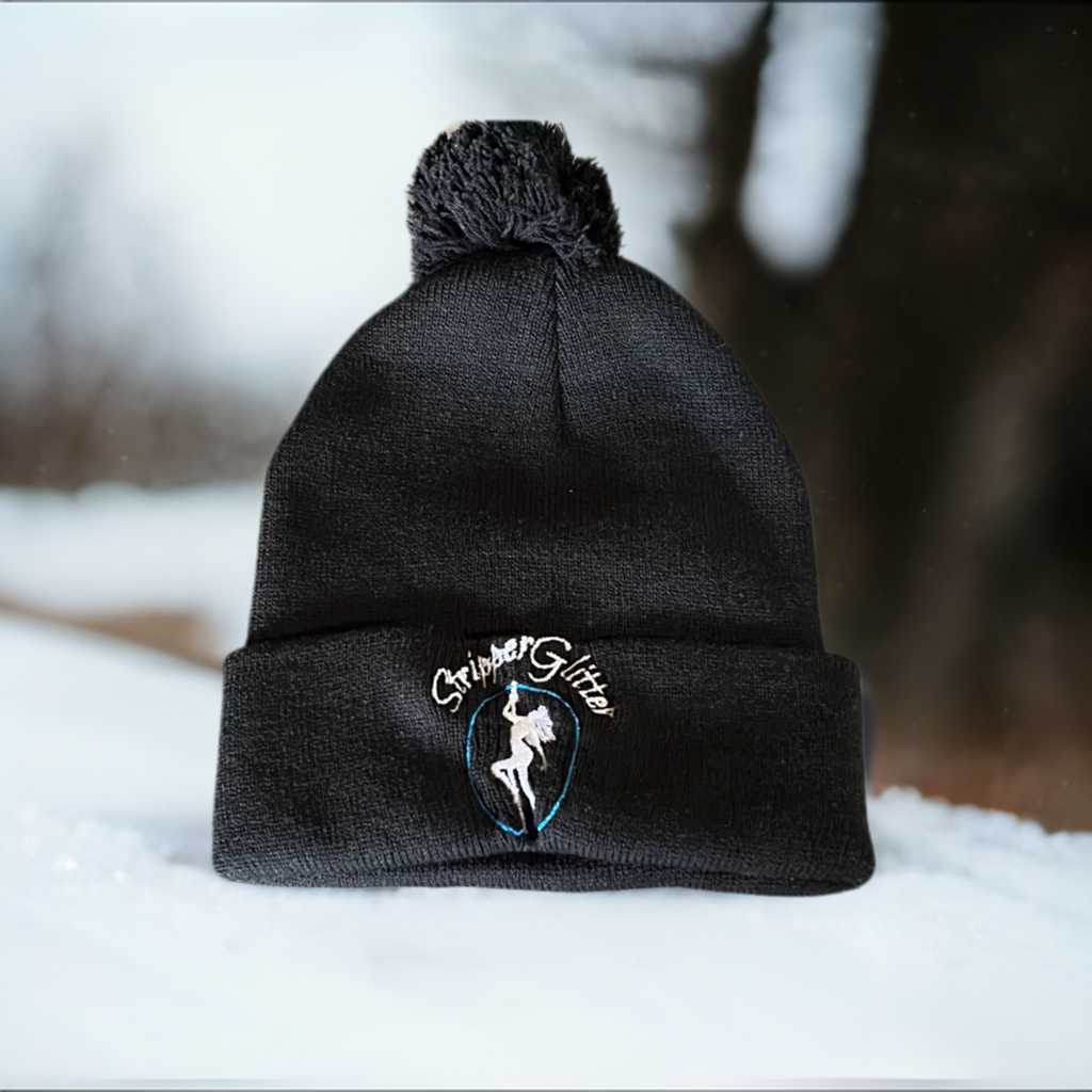 These black fluff ball beanies are ready to keep your head warm at the next race event you attend!