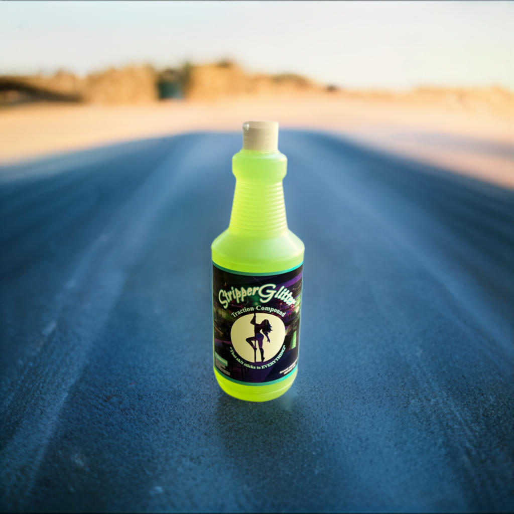 Save yourself from carrying around a 1-gallon jug of Stripper Glitter and instead carry this 32oz bottle. Made for easily squeezing prep out in front of your tires for your next street or PYOP event at the track! The flip tap makes for easy opening/closing. Our prep is 100% ready out of the bottle so pour and go!